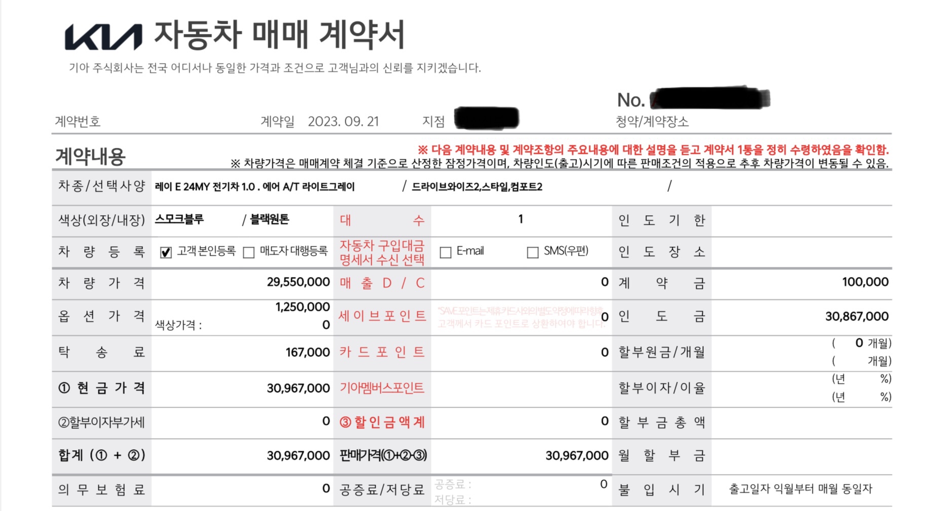 그러나 캐스퍼와는 달리 매장에 가서 딜러를 통해 계약하는 차량의 특성상, 딜러의 말에 현혹되었다. 내가 아니라 엄마가. 엄마가 옵션은 얼마 다 안하니까 넣자고 설득해서 결국 풀옵션을 구매했다.