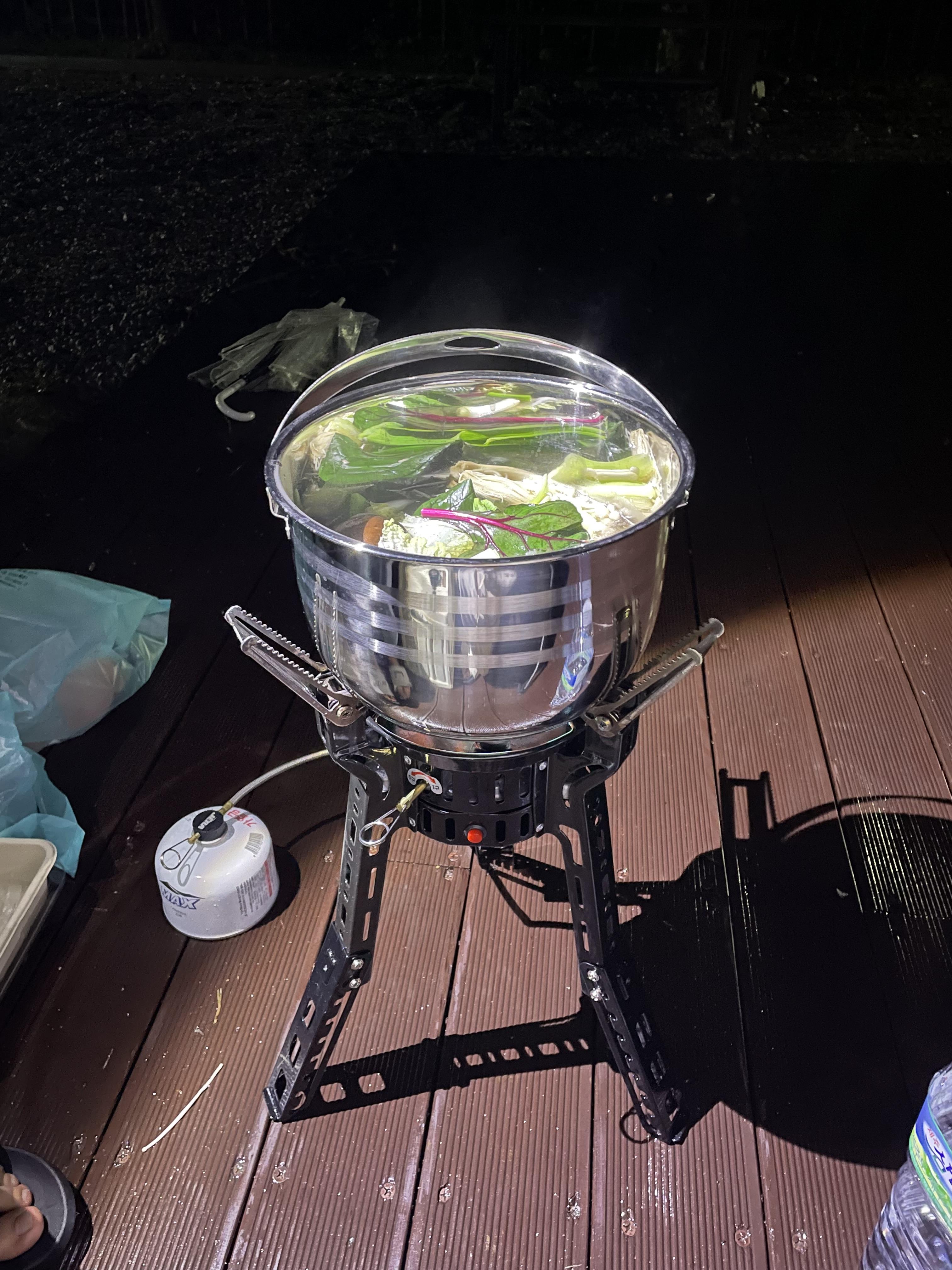 저녁밥으로 가스버너로 밀키트를 요리해 먹었는데, 다음에 또 차박을 오게 된다면 가스버너가 아니라 전기 인덕션을 가지고 오면 될 것 같다.