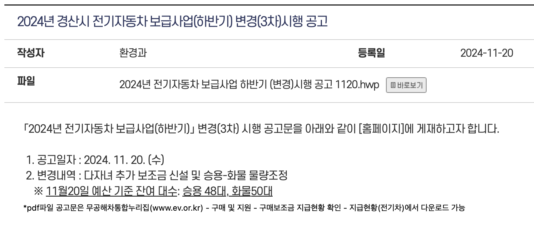 다만 걱정되는건 보조금 소진이었다. 11월 말이면 거의 연말일 만큼 지자체 보조금이 동 나지 않을까.