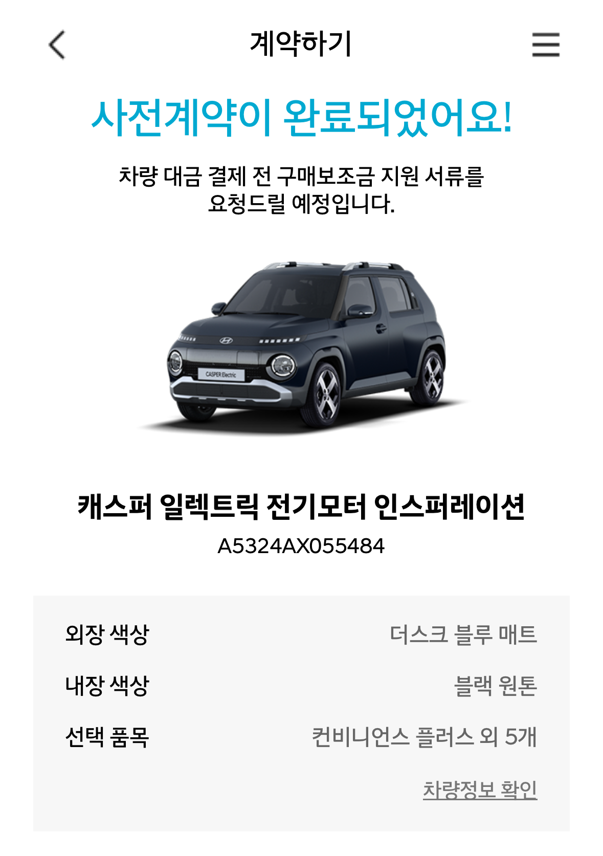 캐스퍼 고객센터에서 전입 사실을 확인하고 전기차 보조금 관련한 연락이 왔다. 이사를 가게 돼서 90일 뒤에 차를 사겠다고 하니까, 그렇다면 내가 사전계약한 모델의 차가 없을 수도 있다고 한다.