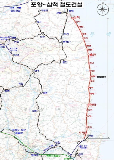 동해선 포항~영덕 구간은 단선 비전철로 지어졌으며 주민들은 현재 전철화를 주장하고 있습니다.