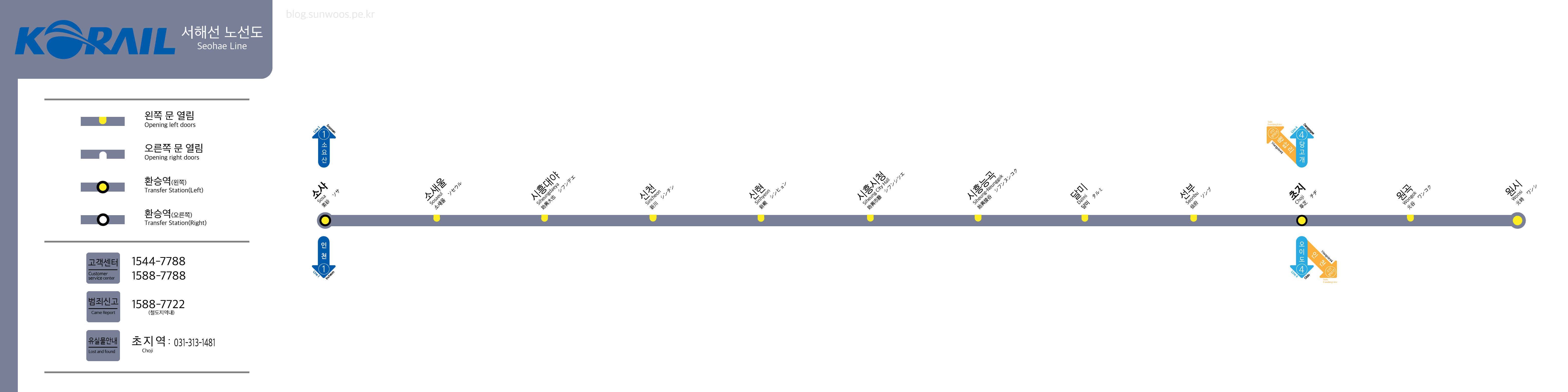 북쪽으로는 2021년 개통 예정인 대곡~소사 복선전철과 직결되며 남쪽으로는 서해선과 직결됩니다. 시흥시청~원시구간은 신안산선과 선로를 공유합니다.