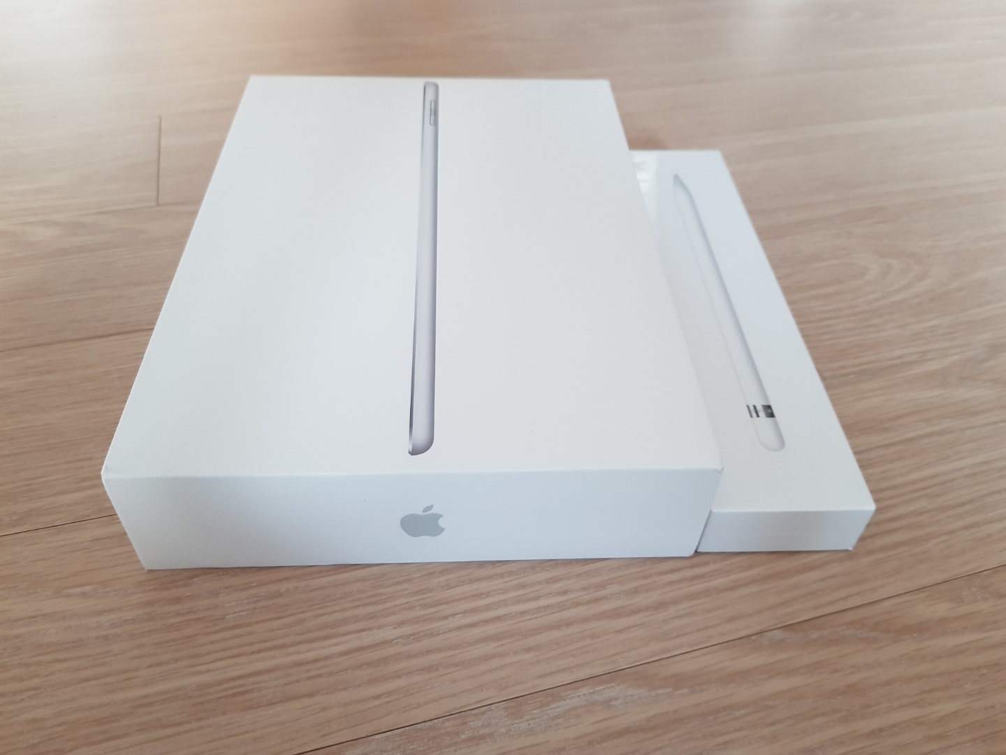 왼쪽은 아이패드 6세대 박스, 오른쪽은 애플펜슬 1세대 박스입니다.