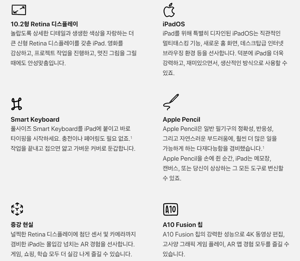 정말 나는 '좋은 사양이 필요 없고, 저렴한 가격에 생산성을 높이고 싶다'면 아이패드 6세대를 중고로 구매하세요. 9.7인치 디스플레이로 MS오피스도 무료로 사용할 수 있으며, 어차피 비싸서 구매하지 않을 Smart Keyboard는 지원하지 않지만 모든 블루투스 키보드도 지원하고, iPadOS도 지원 예정이며 현재 중고 가격도 30만원대 정도로 무척 저렴한데다 Smart Cover또한 만원 더 저렴하게 구매할 수 있습니다.