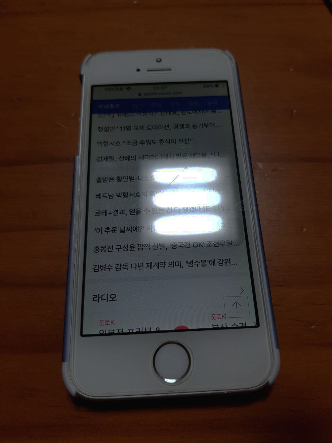 강화유리 필름이 부착된 아이폰의 경우 형광등의 빛이 나는 부분이 그대로 반사되어 화면에 글자 부분이 잘 보이지 않을 정도지만, 종이질감 필름은 난반사가 발생해 빛이 퍼져서 반사되어 빛이 비치는 부분도 글자가 보입니다.