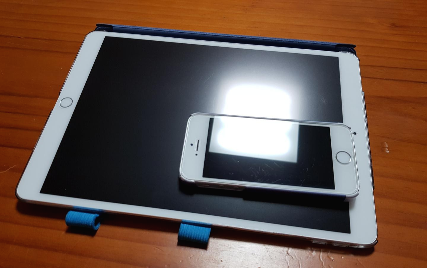 종이질감 필름을 부착한 아이패드와 강화유리 필름을 부착한 아이폰의 빛 반사 비교입니다.