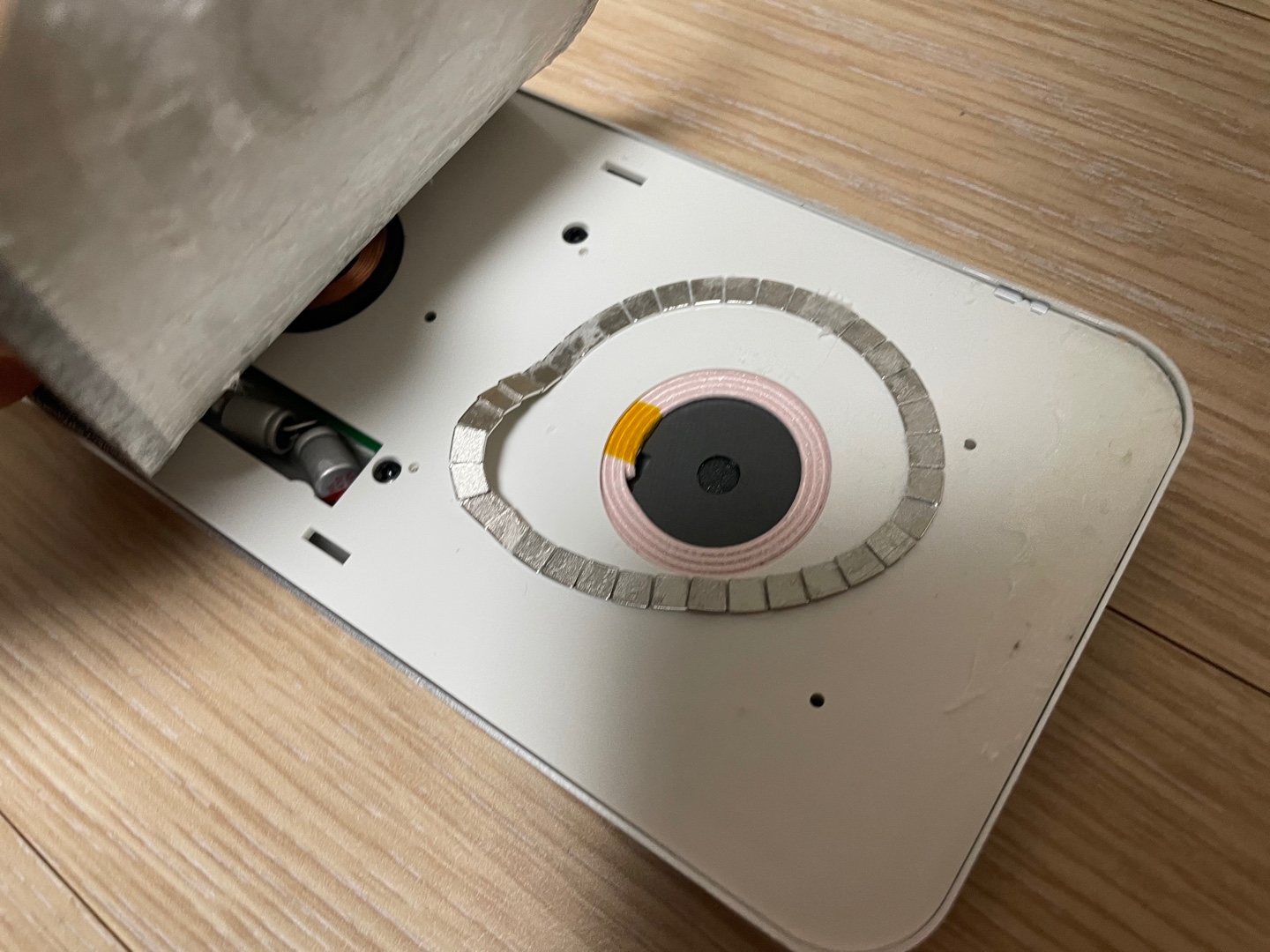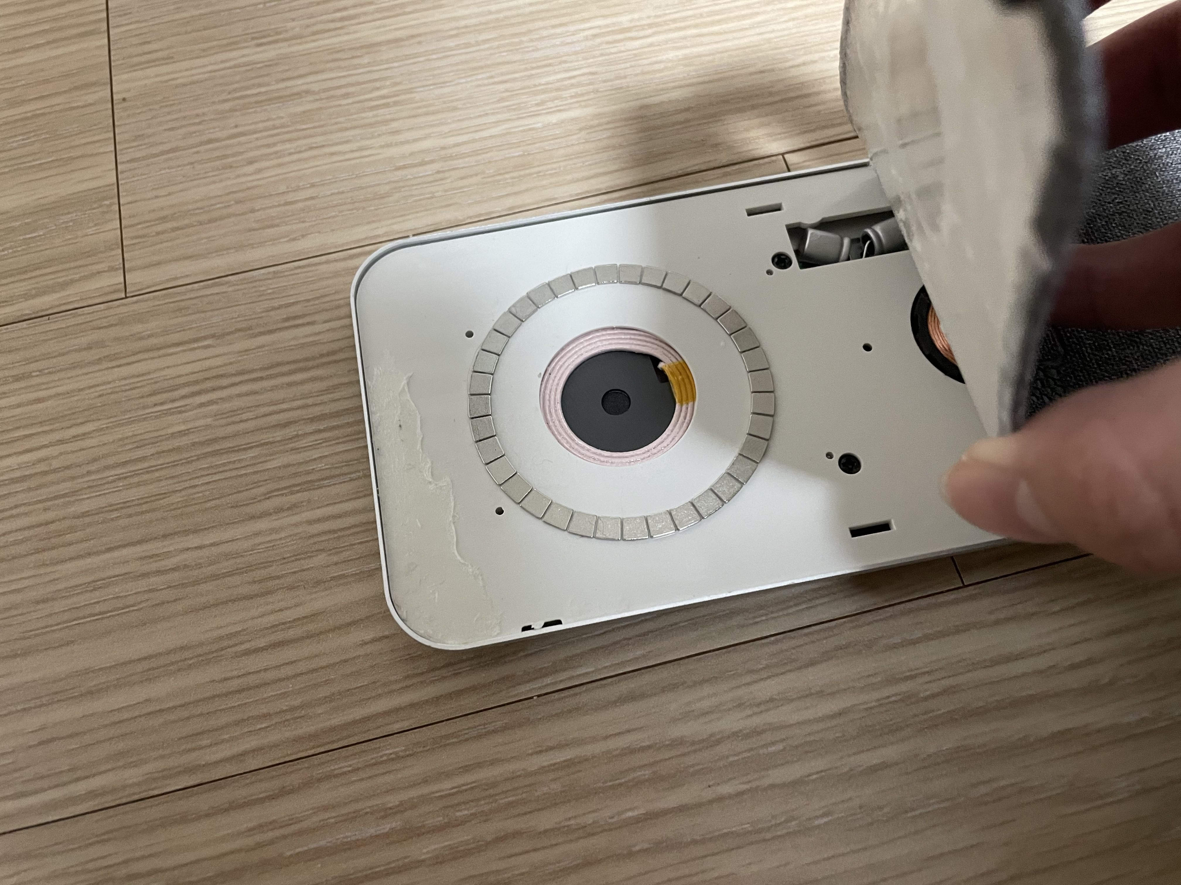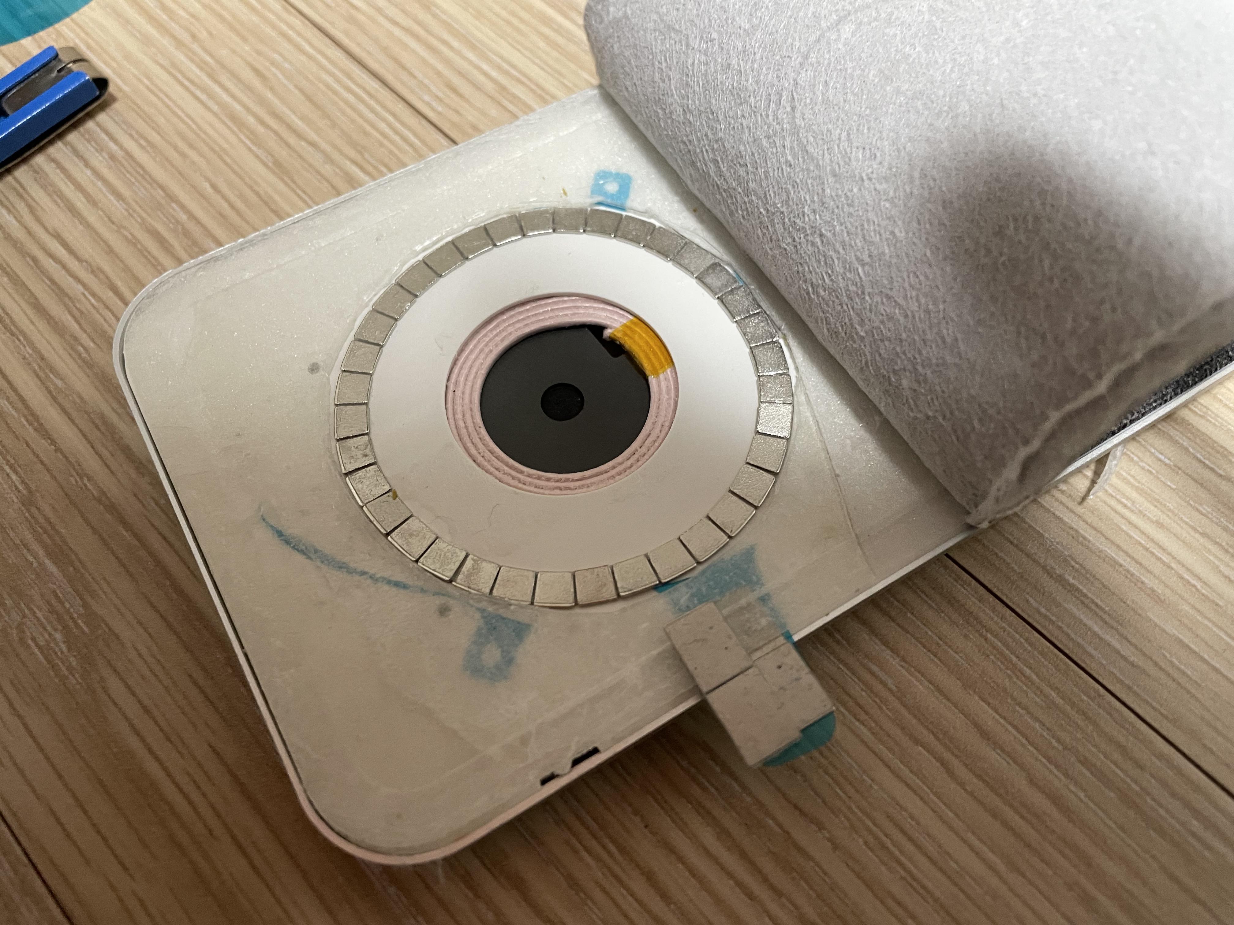 다들 알다시피 자석은 거리가 조금만 있어도 자력이 매우 약해진다. 맥세이프가 지원되지 않는 케이스를 끼울 경우 아무리 얇은 투명 케이스라도 맥세이프의 자력이 크게 떨어지는 것 처럼 말이다. 이 역시 무선 충전 패드를 덮고 있는 판이 너무 두꺼워서 생긴 문제였다.