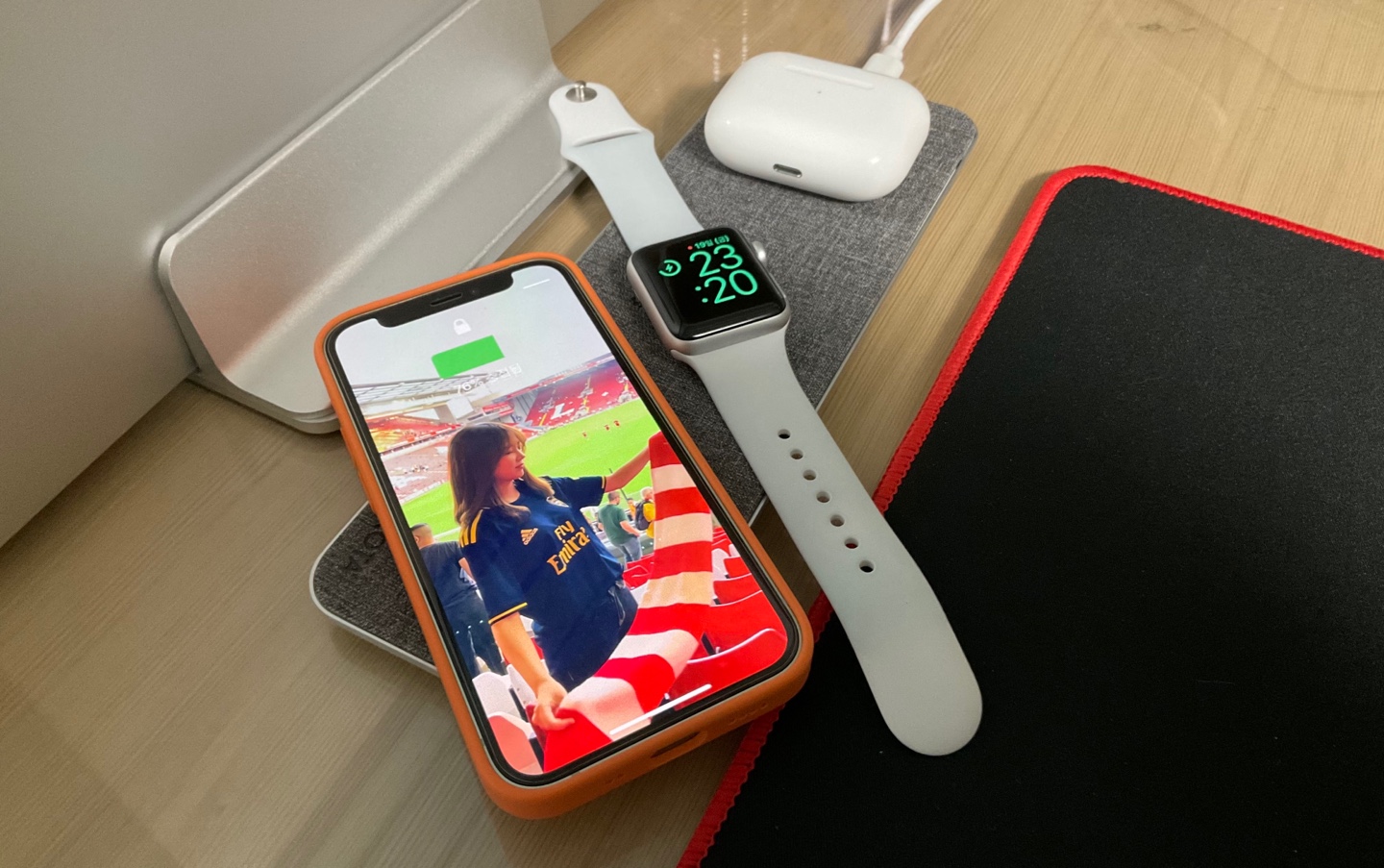 덕분에 책상이 깔끔해졌다. 맥세이프 자석 덕분에 아이폰 12 미니를 충전할 때에도 위치를 신경 쓰지 않고 올려둬도 된다. 애플워치를 충전하는 부분에는 애초에 자석이 내장되어 있어 편리하다.