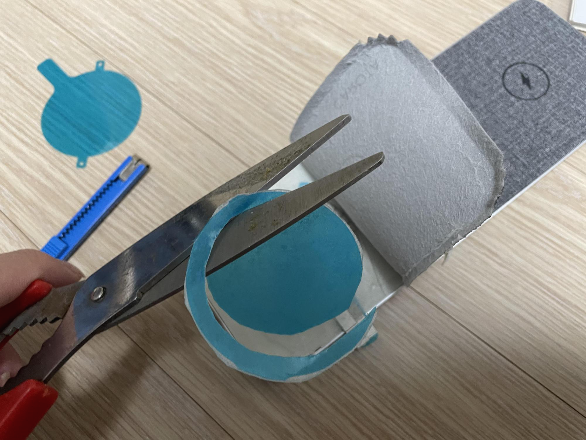 가위로 미리 붙여둔 스티커의 모양을 따라 동그란 모양으로 잘라 준다.
