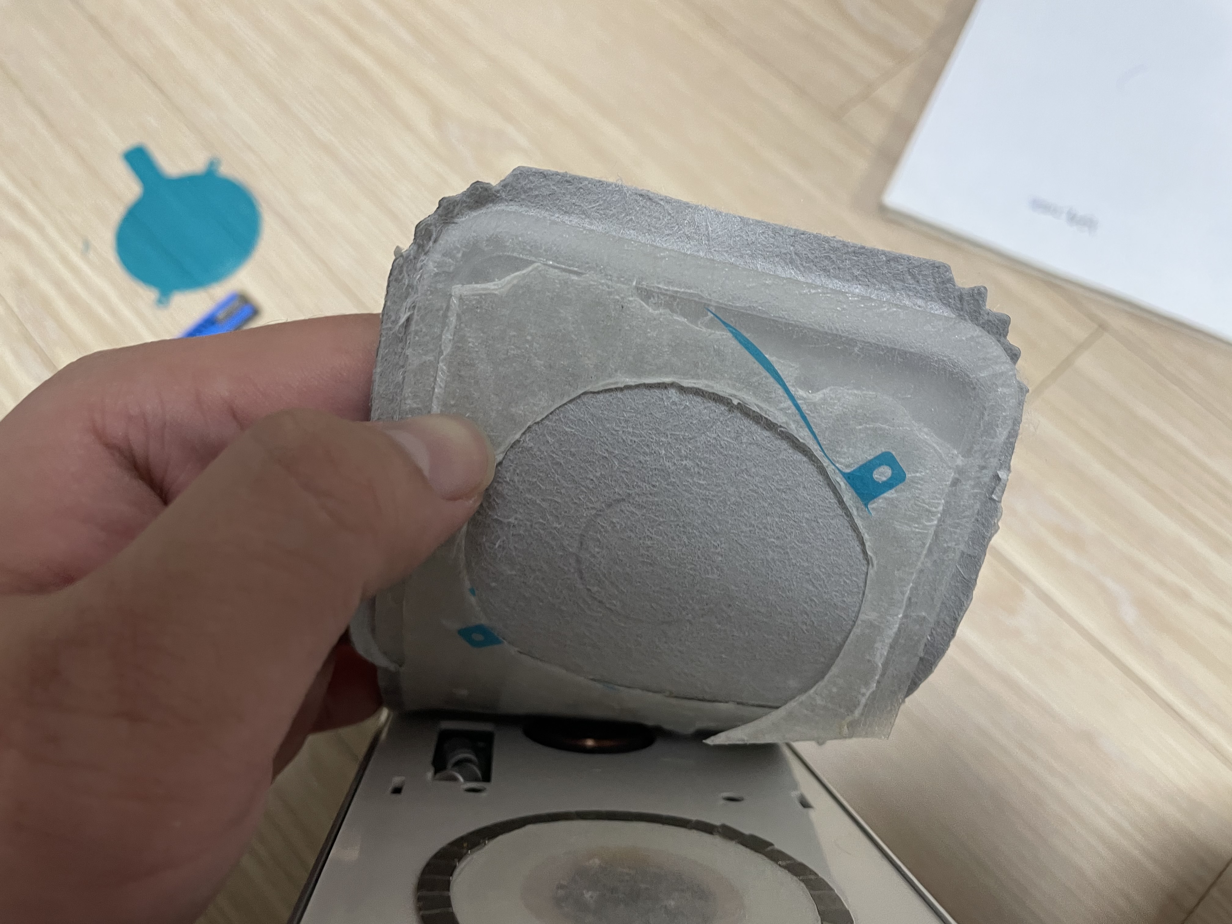 다시 패드 덮개에 드라이기로 열을 가한 뒤 떼내려는데.... 자석이 같이 떨어져 나와서 모양이 찌그러져 버리는 대 참사가 발생했다.