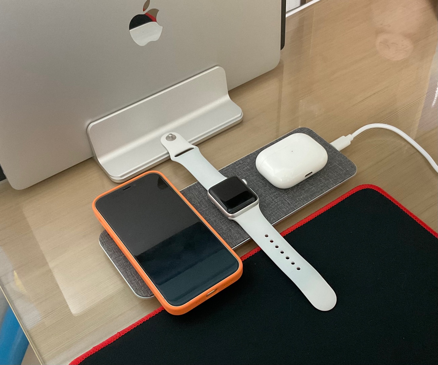아이폰, 애플 워치, 에어팟 프로를 모두 사용하고 있어 충전 케이블이 많아 책상이 많이 지저분했고, 이런 책상을 깔끔하게 정리하기 위해 아이폰, 애플워치, 에어팟을 한번에 충전 할 수 있는 무선 충전 패드를 찾아보고 있었다. 게다가 아이폰 12를 사용하고 있어 맥세이프가 지원되는 무선 충전기나, 위치를 맞출 필요가 없는 거치형 충전기를 원했다.