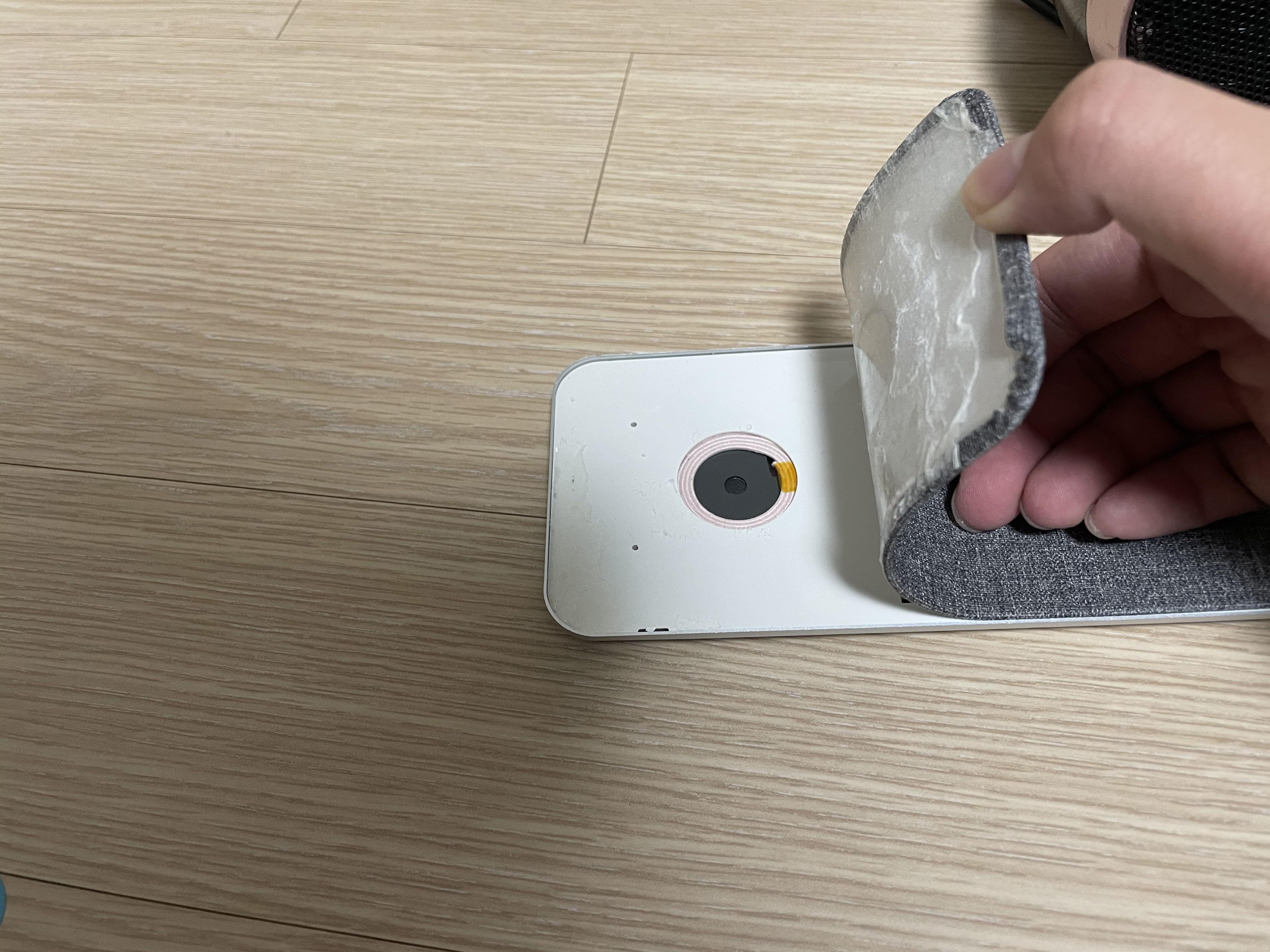 패드를 덮고 있는 부분은 플라스틱 같이 생긴 두꺼운 판 위를 패브릭 소재의 천이 감싸고 있는 구조이다. 이 두꺼운 플라스틱 판을 잘라서 그 안에 자석을 넣으면 해결할 수 있을 것이다.