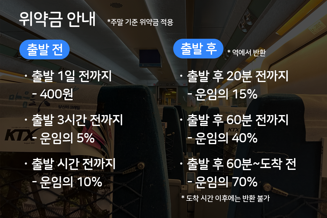 추석 승차권은 주말 반환 위약금과 동일한 위약금이 적용됩니다.