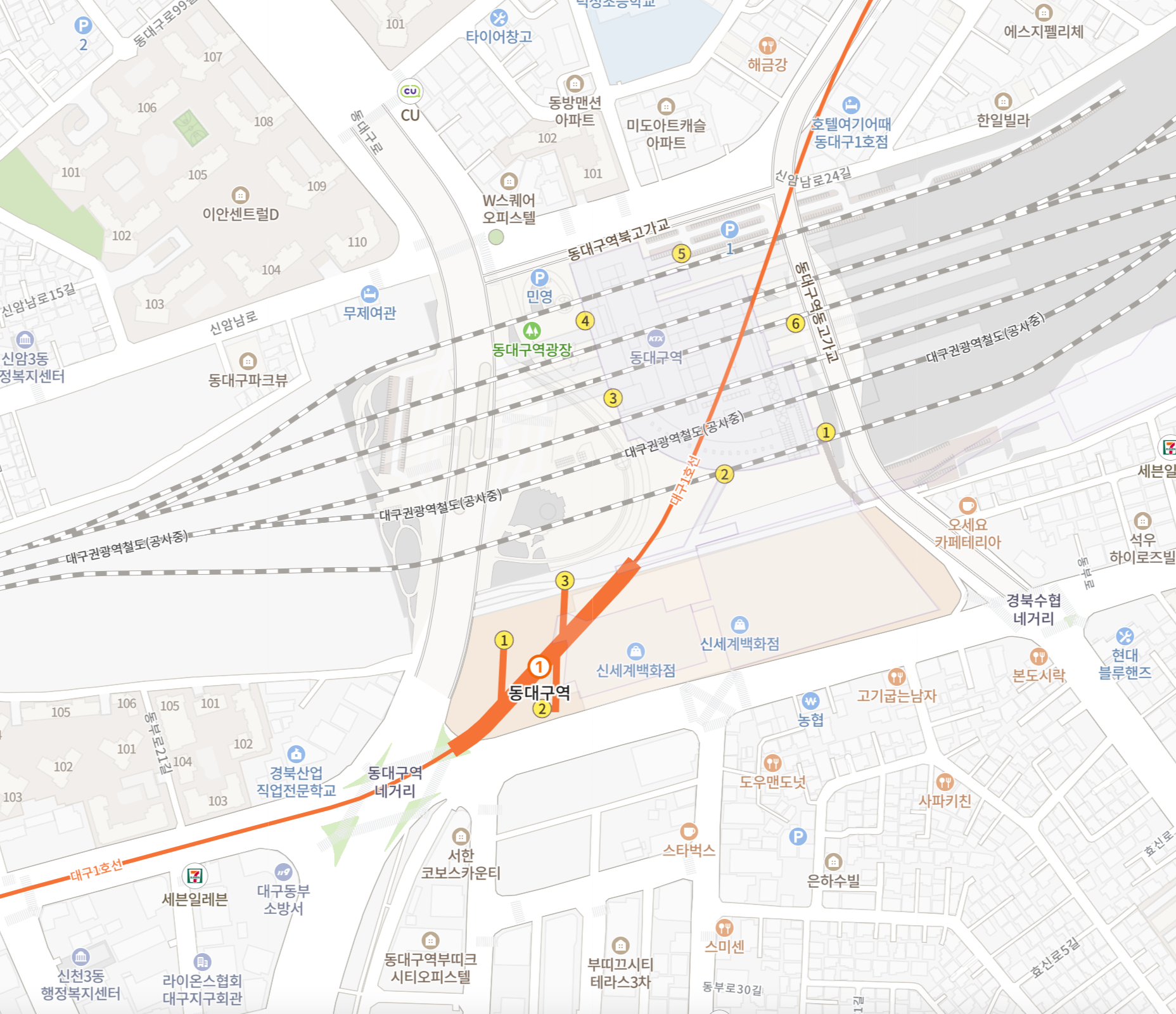 대구역까지는 5분, 대구 최대 번화가인 동성로에 있는 중앙로역까지는 6분이면 도착합니다.