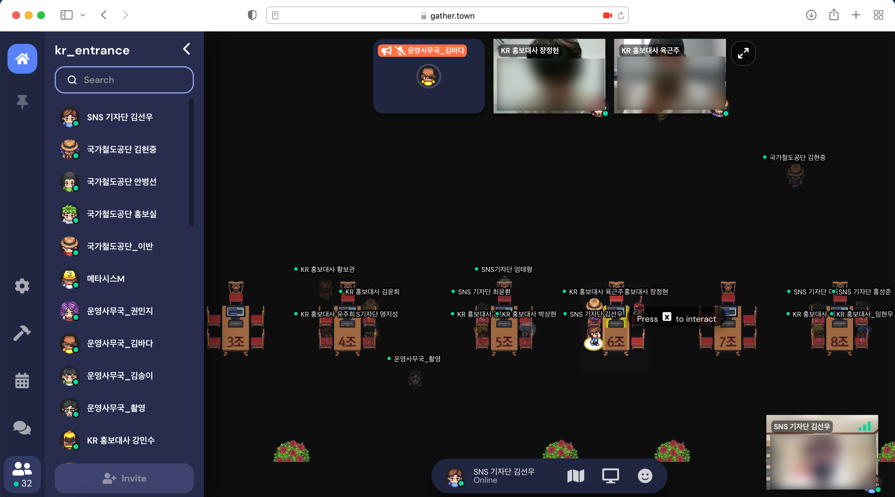 국가철도공단 워크숍도 게더타운에 구현된 가상 공간에서 진행되었습니다.