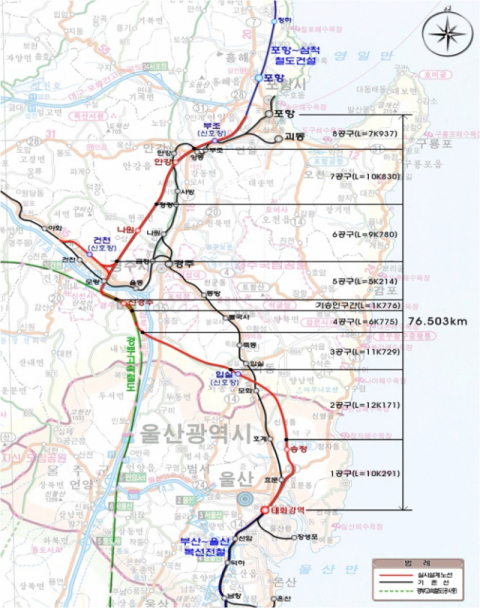 이 노선이 개통하게 되면 기존에 포항~경주 구간의 동해남부선 기존 철도는 운행이 중단됩니다.