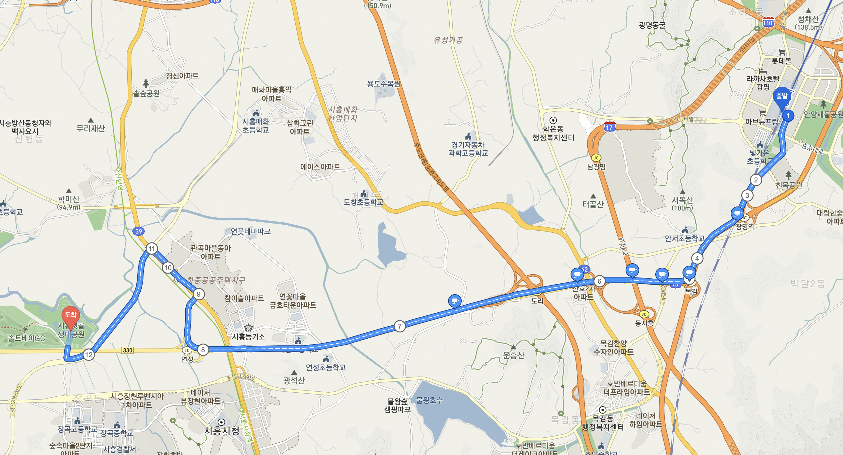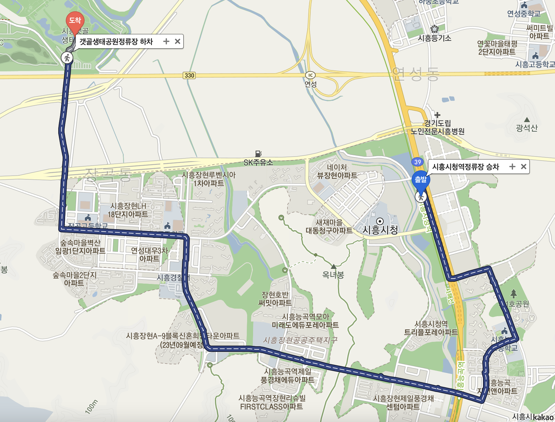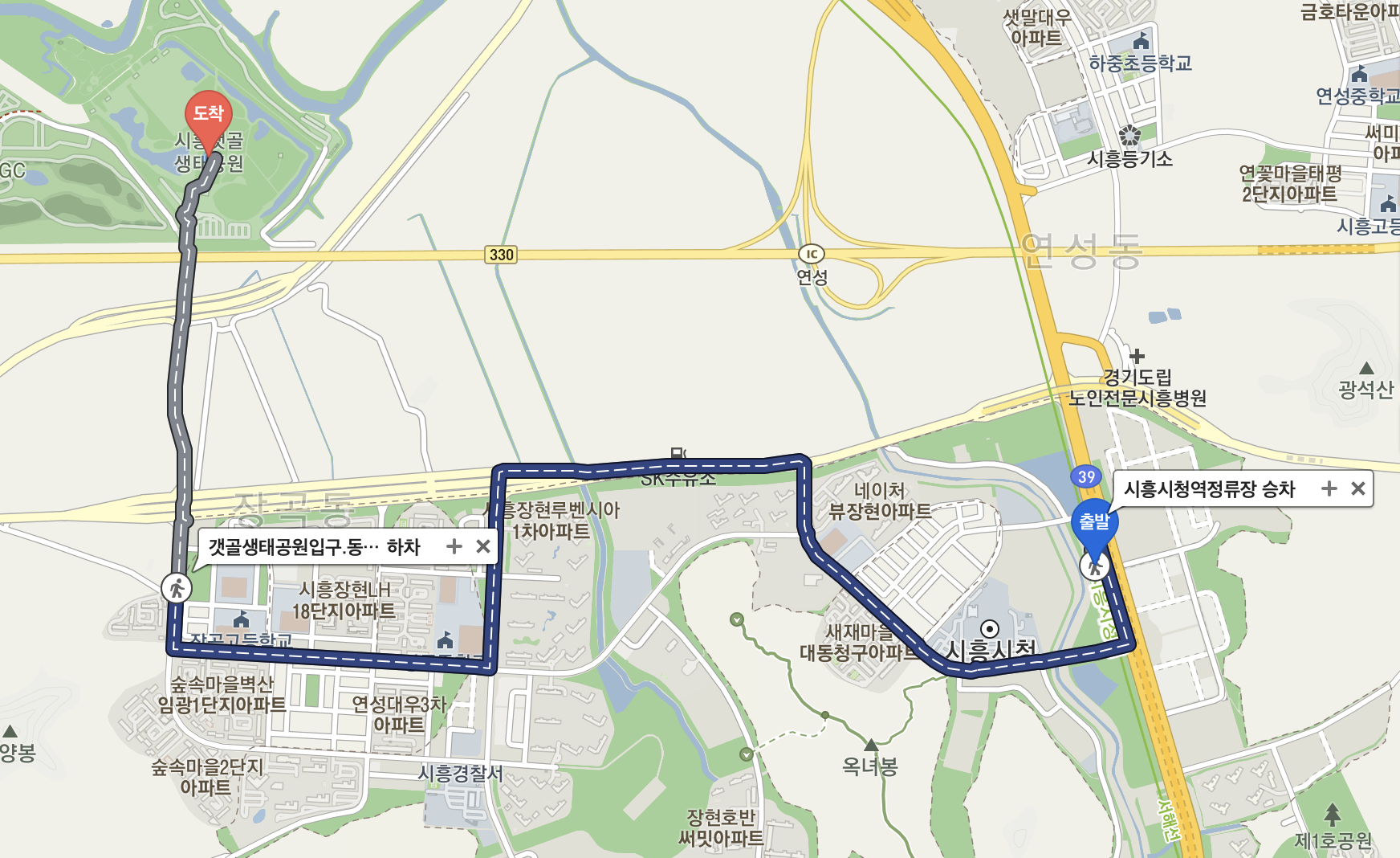 시흥시청역에서 5번 마을버스를 이용하실 경우에는 바로 갯골생태공원 앞에서 하차할 수 있습니다.