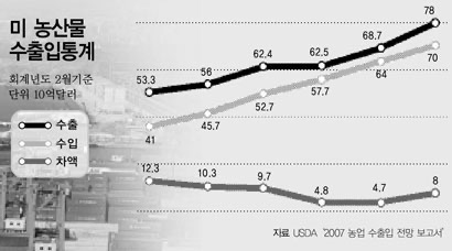 미국은 넓은 영토와 기계를 사용한 경작을 바탕으로 농산물 생산량을 어마어마하게 증가시켜왔다. 그리고 이들 식량은 도시화와 산업화로 21세기 이후 인구가 폭증한 아시아 대륙으로 많이 수출되었다. 당장 우리나라에서도 한미 FTA로 관세가 계속해서 감소하면서 이제는 마트에 가면 캘리포니아 쌀을 쉽게 볼 수 있을 정도다.