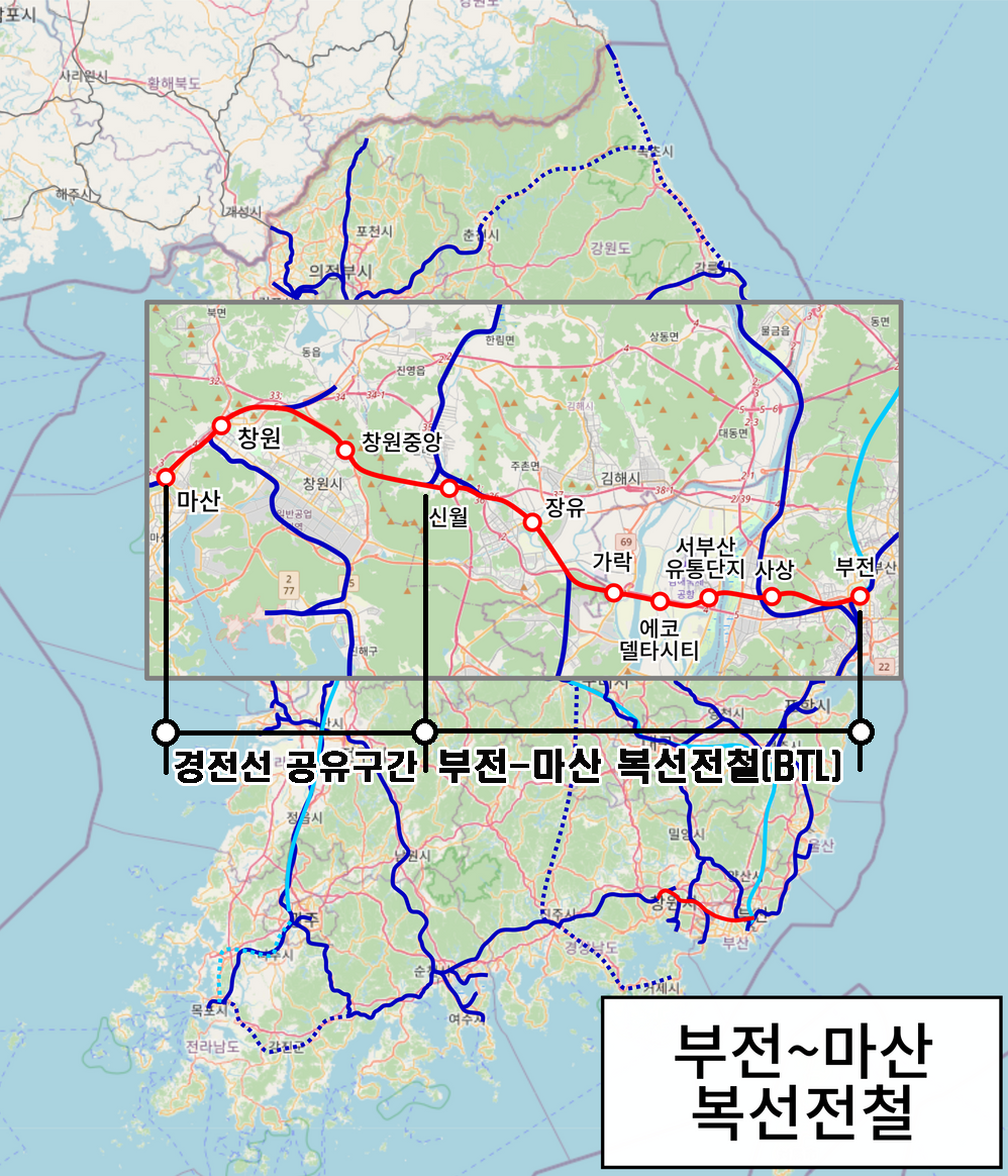 서부산유통단지~사상 구간 낙동강 하저터널 붕괴로 당초 2020년 개통 예정이던 부전 마산 복선전철 개통이 2년 넘게 연기되었습니다.
