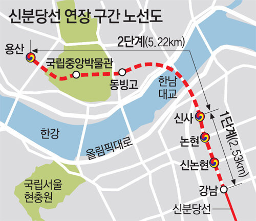 신분당선 북부 연장 1단계 구간인 신사~강남구간이 올해 5월 28일에 개통합니다. 추후 용산까지 연장 될 예정입니다.