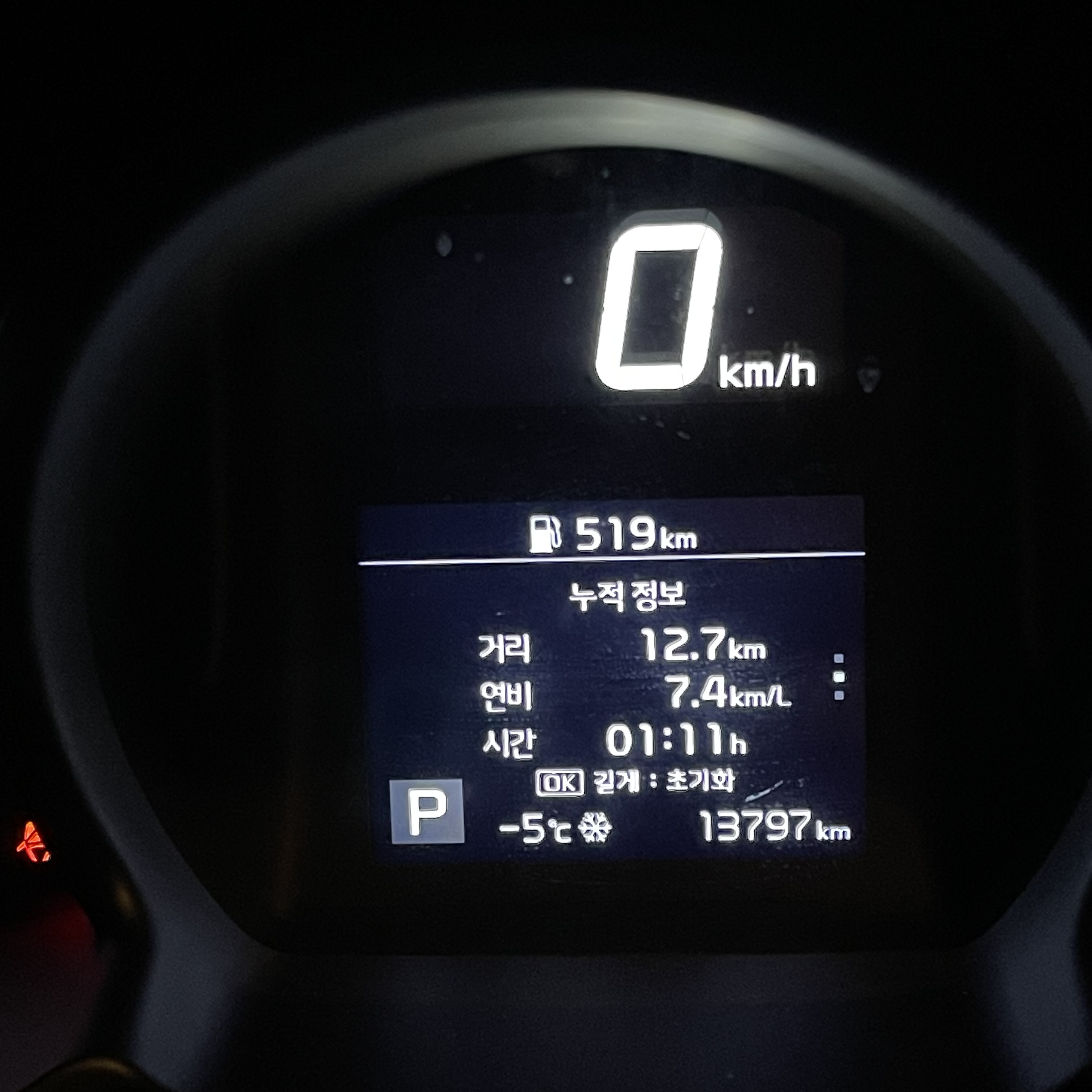 아 물론, 평지에서 브레이크에서 발을 떼면 오토홀드를 경험할 수 있었습니다. 브레이크에서 발을 떼어도 엑셀을 밟지 않으면 차가 앞으로 움직이지 않더라고요. 공차중륭 1040kg 짜리 레이에 약 360kg를 얹은 것은 너무 가혹하긴 했나 봅니다.