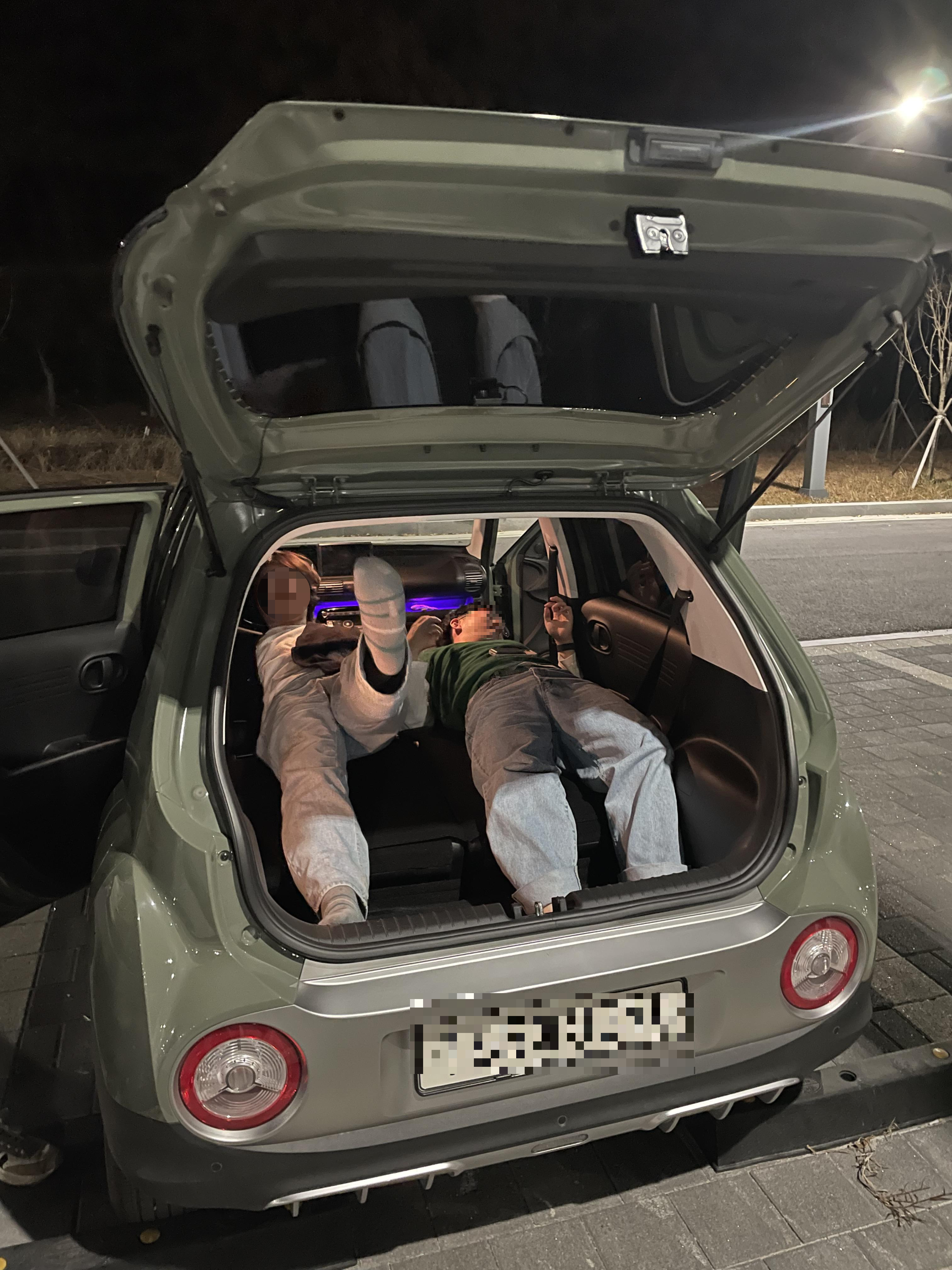 시승차로는 1시간이라는 애매한 시간 때문에 전좌석 폴딩 기능을 체험해 볼 일이 없었는데, 그린카를 이용할 때 친구들과 함께 캐스퍼를 타고 시외 지역으로 이동해 풀 폴딩 기능을 이용해 보았습니다.